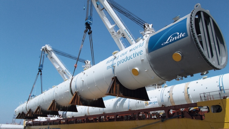 A single column can measure up to 7 m in diameter, be up to 45 m long, and weigh up to 170 tons. The walls can be up to 70 mm thick. Components that exceed these dimensions are welded at Linde workshops near harbours or directly on site.